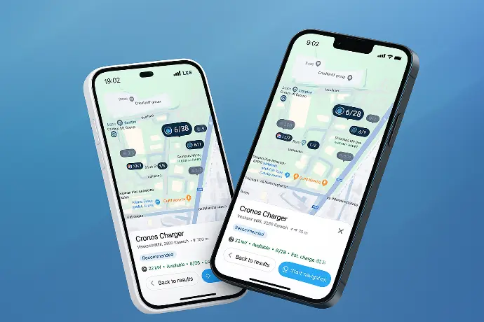Download de Cronos Charge App op je iPhone of Android smartphone om onderweg snel een beschikbare lader te vinden: